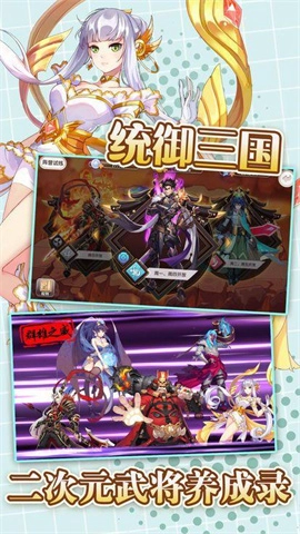 2018首款动漫人物穿越大乱斗游戏来袭!以三国为背景,选用日系萌娘题材,将热血三国与萝莉娇娘结合,为你带来不一样的异世萌战!精美2Dlive实装,华丽的特效,二次元换装+弹幕附体,游戏体验感好到飞起!