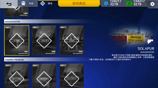 2、在车库,你可以了解到各种印度火车的模型,可自由进行选择。