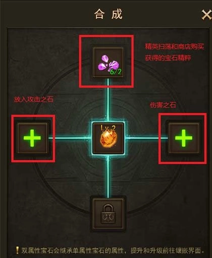 已经制作完成的双属性宝石,还能进一步提升等级,等级越高,其属性加成也就越显著。而提升等级的过程需要消耗相应数量的宝石精粹。