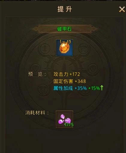 破甲石:镶嵌后增加角色攻击力和固定伤害