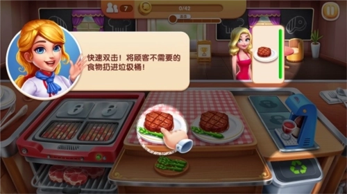 快速双击,将顾客不需要的食物扔进垃圾桶。