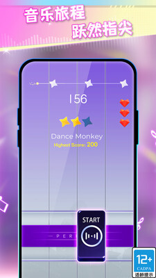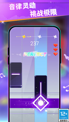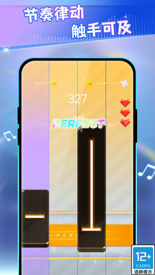 2、绝对不要踩到白块,这是对智力和手速的双重挑战,让手指跟着音乐的节奏舞动起来吧。