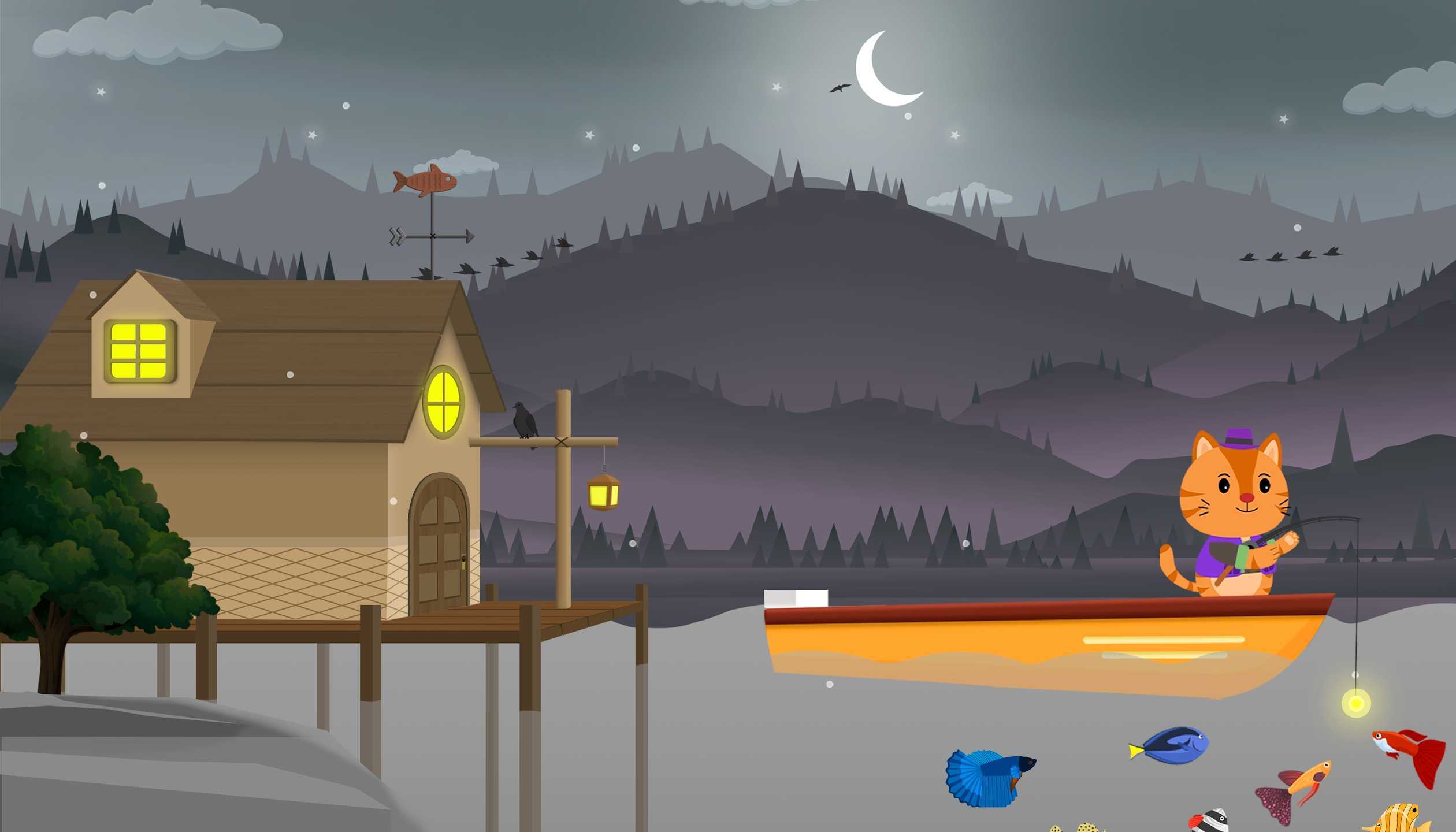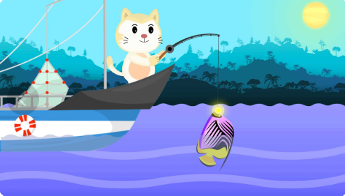 2. 把握钓鱼的时机:一旦鱼儿被引诱过来,就得快速点击屏幕,帮助小猫把鱼儿钓上来。