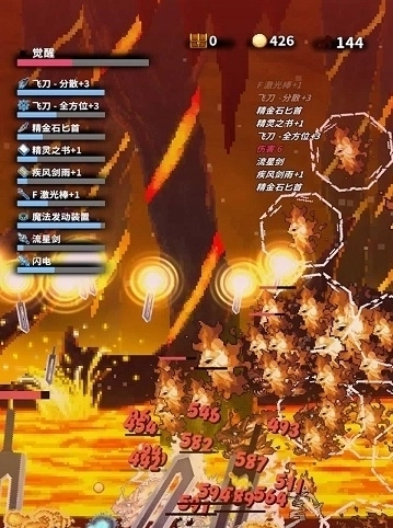 基本上各类剑雨在前期都挺好用,但到了中期就明显疲软了,原因是剑没有贯穿效果,面对满屏杂兵根本打不了几下