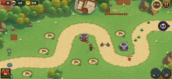 玩这款游戏时,要留意右上角的三个图标:第一个爱心图标显示的是敌人能通过路径抵达终点的剩余数量;第二个是敌人的波次标识,像“2/4”就表示已经经历了两波敌人,还剩两波即将来袭;第三个是金币图标,这些金币仅能在当前这一局游戏中使用,可用于购买防御塔以及对其进行升级。另外,站在草坪区域的英雄能够自由移动,既能配合防御塔一同攻击敌人,也能去攻击那些防御塔射程无法覆盖到的区域。
