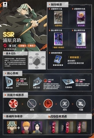 作为支援定位的死神,浦原喜助在控场方面的表现相当出色。他的斩魄刀红姬可以借助普攻、战技与封灭来累积灵压储能,进而解锁分支攻击。有意思的是,他的战技能把敌人聚集到一处,为输出角色创造出理想的输出条件。此外,他的必杀技不仅具备攻击敌人的效果,还附带提升暴击伤害的增益效果,确实是适配各类队伍的百搭角色!