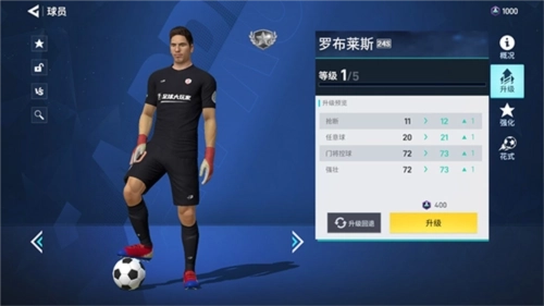 球员等级提升时,所需消耗的经验卡数量会逐次增加,而且每提升一级,球员的能力值都会得到相应的增长。比如,当球员等级从1级升到2级时,他的凌空抽射、抢断、盘带、任意球、强壮以及射术这几项数值都会各增加1点。