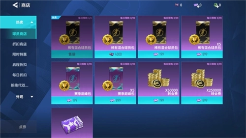 7、玩家能够在游戏商店里购买球员卡包,以此抽取新的球员。