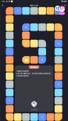 2、点击摇骰子按钮,骰子掷出的点数是多少,代表角色的小人就相应前进几步。不过输赢其实没那么重要,更关键的是在前进过程中遇到的各类任务。