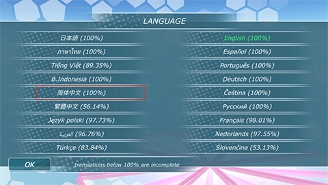 2、点击language旁边显示为“English100%”的按钮