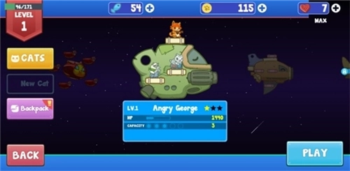 决战喵星中文版是一款超有趣的猫咪飞行射击闯关游戏。在游戏里,你会变成超可爱的小猫咪参与战斗,玩法有点类似塔防,需要把猫咪拖到飞船上发起攻击。游戏提供了不同类型的猫咪,每种都有专属技能,有的能帮忙回血,有的可以维修飞船。无论是猫咪还是飞船,都能进行升级,感兴趣的玩家不妨来体验一下!