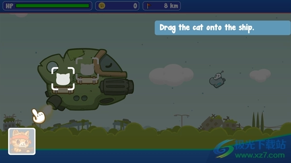2、把猫拖上船,你的猫咪会自动攻击外星人;