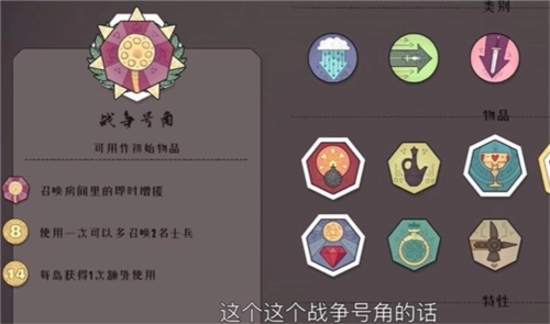4、战争号角:可召唤房间内的即时支援力量,每使用一次能额外召唤2名士兵。