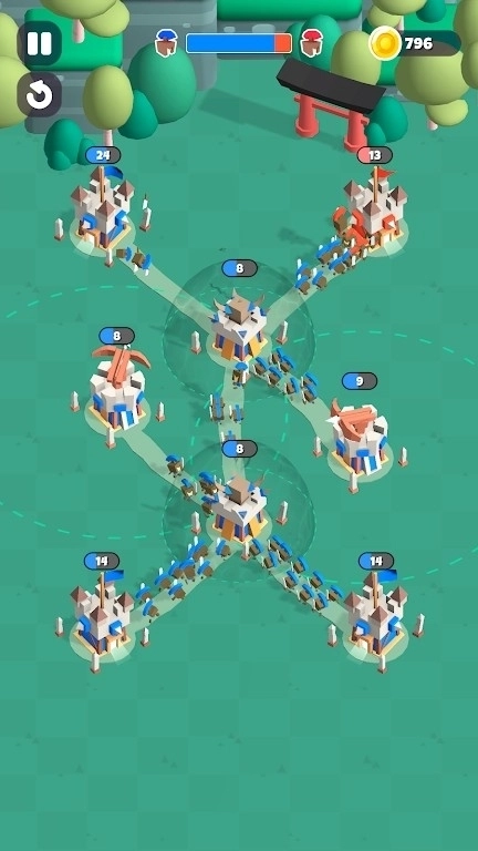 每个关卡的敌人数量与难度各有差异,所以合理调配兵力、挑选攻击对象、按时升级城堡与士兵,都是取得胜利的重要因素。你得依据敌人的实力和自身的状况,适时增强自身的防御与攻击能力。