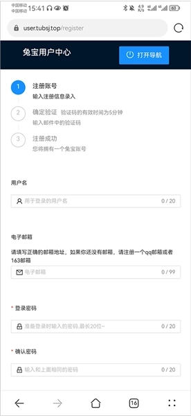 2、在浏览器打开的兔宝用户中心页面里,点击开启导航