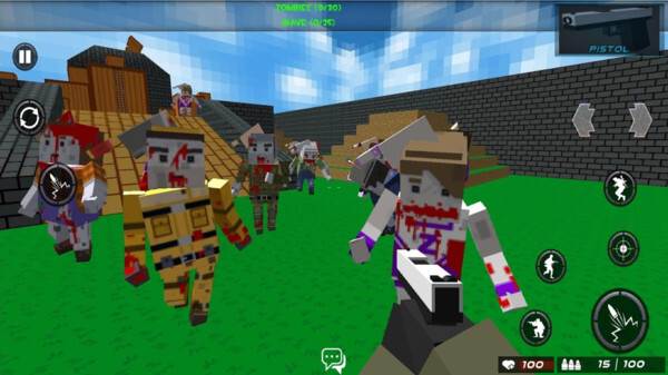 《战斗方块竞技场》是一款像素方块风格的射击动作游戏,玩家将操控像素方块人投身战斗,通过持续射击僵尸来完成关卡挑战。游戏内除了僵尸射击模式外,还支持多人联机玩法,你可以邀请好友一同进入游戏,要么携手射击僵尸,要么与其他玩家展开对战。