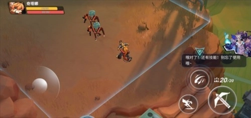 3、进入游戏界面后,会有NPC为你提供新手指引,练习操控时需要用到摇杆。