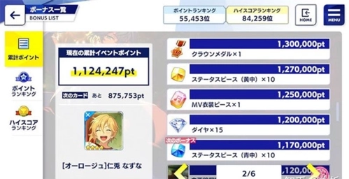 1)完成各类演唱会的场次、完美连击的次数、不同属性歌曲的完成回数、分数目标的达成次数。