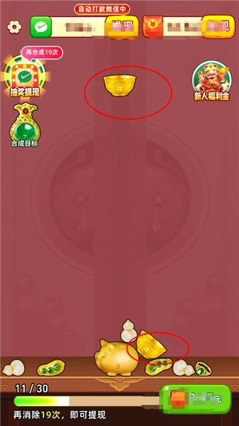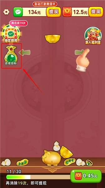 4、之后可以继续利用福利时间,合成出第二个财神,财神同样能够直接兑换提现红包。