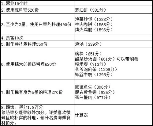 (5)75号任务里的15玉璧小费,获取方式是每天做完菜后从桌上搜取;这个搜取操作有23小时的刷新间隔,而且得在完成一次做菜后才能进行搜取。
