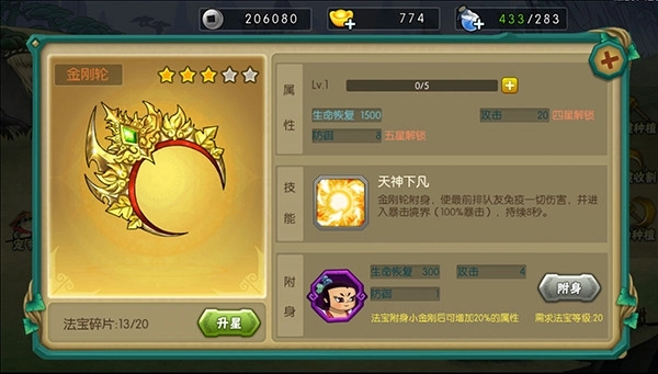 金刚轮是小金刚的专属法宝,除了能够提升自身属性外,还具备特殊技能——可为友方前排提供免疫伤害效果并增加其暴击率。