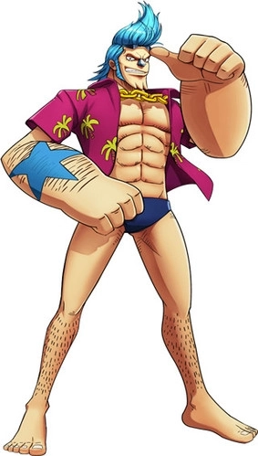 1、弗兰奇是草帽海盗团的船匠,性格爽朗豪放,平日里爱唱歌,还总爱跳些让人摸不着头脑的奇怪舞蹈,下身常常只穿一条短裤。他是一位一心渴望抵达世界尽头的钢铁船匠。