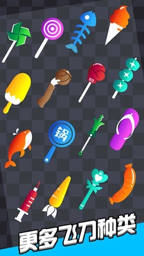 1、游戏中会呈现出各种各样的飞刀样式,闯关过程中时间差带来的挑战感拉满,还能随机匹配到不同的对手。