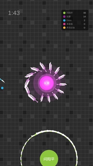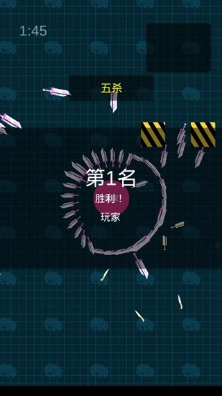 玩家在游戏地图中要操控自己的角色收集飞刀,收集到的飞刀数量越多,角色的实力就越强大。这些飞刀会环绕在角色身旁,就像形成了一圈防护屏障。游戏的最终目标是击败所有对手,从而获得胜利。