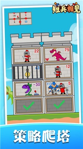 一款融合多元元素的休闲策略对战爬塔游戏全新上线啦!魔性解压,欢乐又放松。点击开启挑战,拖动小人在不同楼层战斗,通过数值大小判定胜负。战斗胜利即可获取敌人的全部属性,持续强化自身。一路爬上顶楼,击败恶龙、拯救公主,成为王国的大英雄!游戏内还有超多精彩丰富的玩法等你来体验哦~