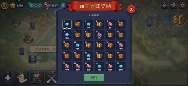 每日参与试炼活动可获得钻石奖励,连续挑战的天数越多,能拿到的钻石数量就越丰厚,当成功完成第30天的挑战时,还会额外获得500宝石的奖励。