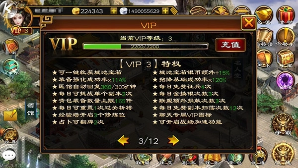 有些刚接触游戏的新手或许会认为,得充值到v10才能把游戏玩好,不过小乔可以负责任地说,其实普通玩家也能玩得很出色!小乔建议大家可以开通v3,这样游戏前期会更轻松,也不会和其他玩家拉开太大差距。要是你时间比较充裕,玩游戏也比较勤快的话,开通v2也完全够用了!