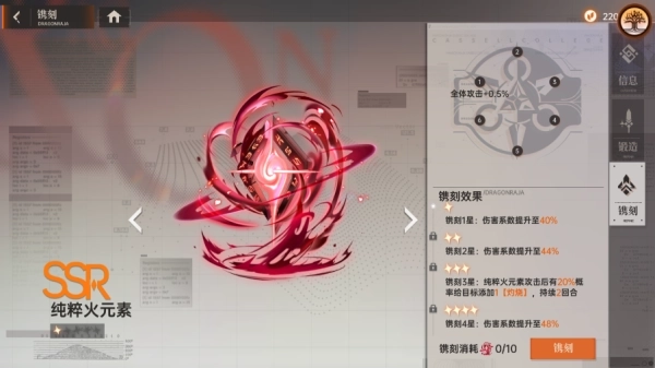2、镌刻操作需消耗同名的炼金武器碎片,当激活当前星级对应的全部节点后,星级会自动提升。