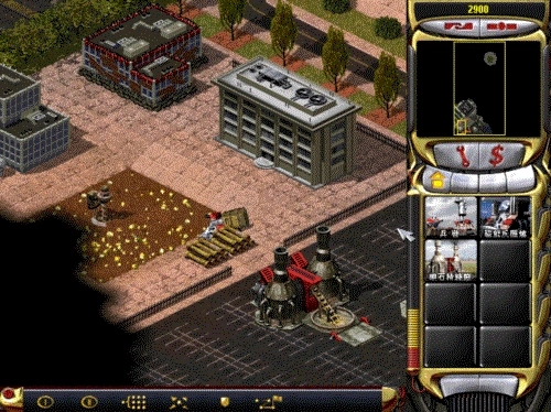 5、用五个飞碟突袭敌人基地时,只需瞄准电厂攻击就行,因为得先切断敌方基地的电力,后续攻击才好开展。等敌方基地的防御系统失去作用后,派己方工程师进去占领建筑就可以了,工程师可以多投放一些。