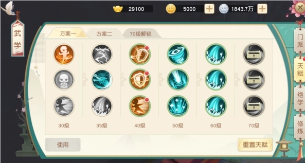 天赋设有3种可保存的方案,且这些方案能无条件自由切换,同时天赋支持无限次免费重置。