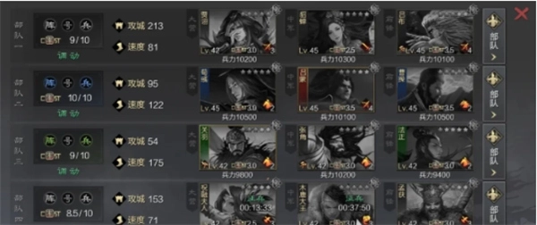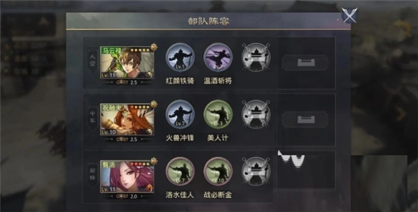 这个阵容的配置相当全面,既能支撑我们发起正面进攻,也能布下十面埋伏的战术。不过郭嘉领衔的这套阵容还附带“避其锋芒”的效果,能让队伍拥有更出色的规避能力。在前期开荒阶段,只要合理调配这三位武将,就能稳步扩充兵力,高效完成开荒进程。