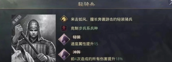 建议转型为“轻骑兵”,张角的自身战法特点使其对速度有较高需求。轻骑兵的“轻装”特性能够增加速度,“冲阵”效果还可提高伤害输出,这两点对于张角这类输出型武将来说都至关重要。
