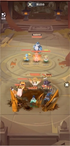 2、第2到3回合优先集中火力攻击小花,将其点杀成功后,就可以准备集火暴食熊了。灵鹤倒地后,带有闪现技能的灵狐会出场,由于它的速度相对较快,能够给我方其他单位喂药,以此维持我方单位的站场能力。