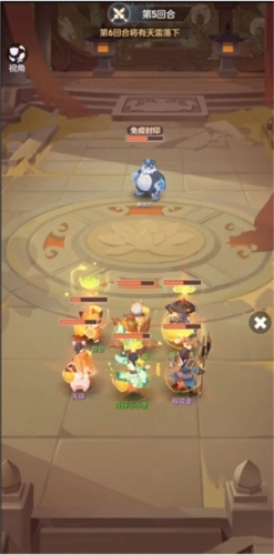 3、第4回合结束后,前排的小花会被全部清理干净,接下来要专心集中火力攻击暴食熊,普陀需要持续为队友恢复生命值,防止队伍在第六回合末尾被天雷直接击败,只要坚持到最后就能顺利通关了。