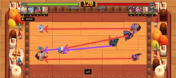 己方初始进行索敌,理论上公主释放小技能后会转而索敌暗狼,但实际情况中,大概率会直接阻挡土盾。