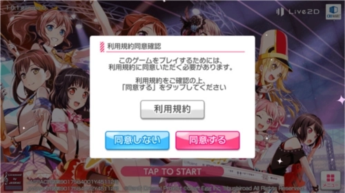 启动少女乐园派对日服游戏后,点击标题界面,接着点击「同意する」按钮就可以进入游戏了(估计也没多少人会仔细去看那份使用条款就是了)。