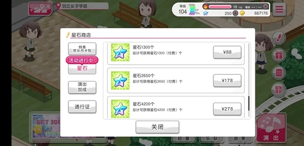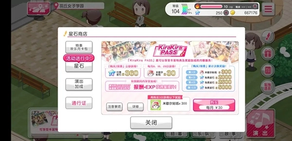 (2)通行证(售价30元):购买后可立即获取360付费星石,同时解锁演出报酬的经验加成,每月通过该通行证最多能获得90个米歇尔贴纸。此外,累计购买达到指定次数可领取额外奖励——购买3次时奖励300米歇尔贴纸,6次时奖励2000免费星石,9次时奖励2500免费星石,12次时奖励5000免费星石;当累计次数达到12次后,将重新开始新一轮的次数累计。