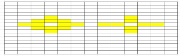 要求同时处于背部武器与手部武器的射程范围内。背部武器当前包含电磁炮和浮游炮两类,鉴于电磁炮采用直线攻击模式,其与手部武器的射程交集范围会小得多,仅针对直线目标才适用,迸发模组的触发概率也会相对较低——如下图中假设射程均为2的两种背部武器对比结果所示,因此该配置更适合搭配浮游炮的机师选用。