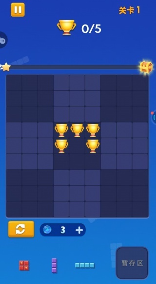 4、在收集模式下,需将注意力集中于带有奖杯的网格区域,规划方块摆放时要优先覆盖奖杯所在的位置,借助消除方块来完成奖杯的收集。