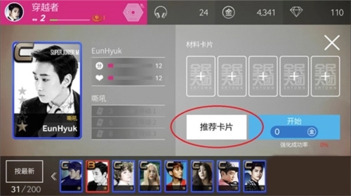 6、当卡片达到5星时,即可进行升级操作,其方法与强化相同。