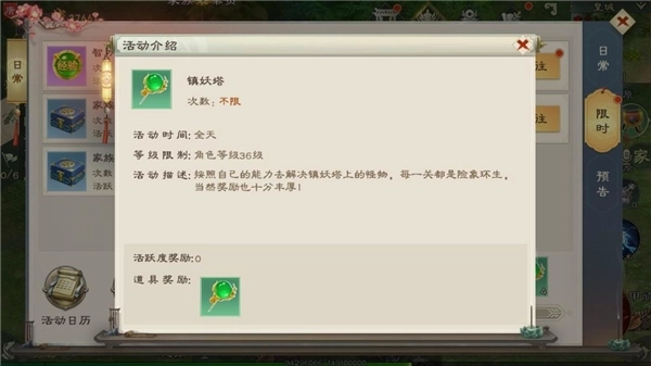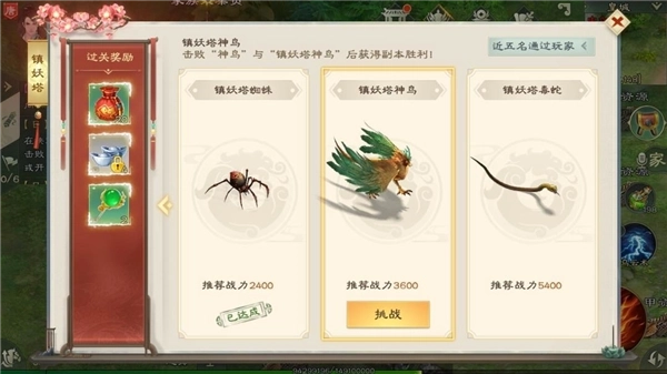 2.镇妖塔全天开放,挑战次数没有限制。每层怪物都会标注推荐战力,建议达到对应的战斗力标准后再去挑战。
