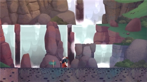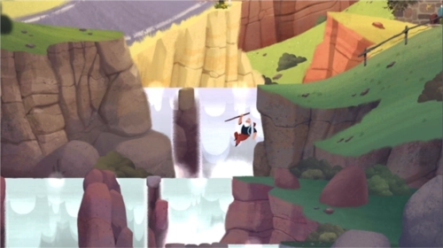 3、前往下一个场景:点击水面,老人踏上水面后就会坠落,一直落到最底部;