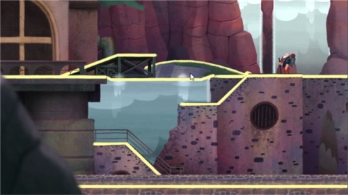 1、前往下一场景:把红色与深黄色的路向下拉动,接着点击前方区域让老人继续行进,既可以选择直接走左侧的楼梯向上攀爬,也能够移动到右侧的高地上。