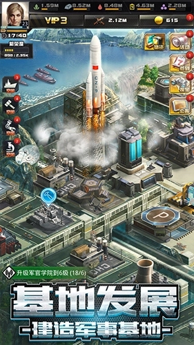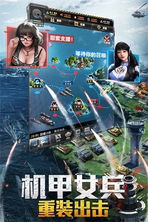 游戏的特色玩法是航母编队系统,它以航母承载部队的形式,巧妙融合了海陆空三军力量。你的所有部队都将由一艘专属航母搭载,一同驰骋四海、征战八方。在游戏里,航母绝非简单的运输载体,它配备了舰载机、战列舰协同攻击等多种主动技能,还拥有能提升各类属性的被动技能。通过灵活调整航母与不同兵种的搭配组合,制定多变的作战策略,就能让你的部队实力更上一层楼!这艘航母对您而言,早已超越了装备的范畴,它是与你并肩作战、闯荡四方的亲密战友和忠实伙伴。现在,海陆空三军已全部集结完毕、整装待命,就等指挥官您下达出征的指令!