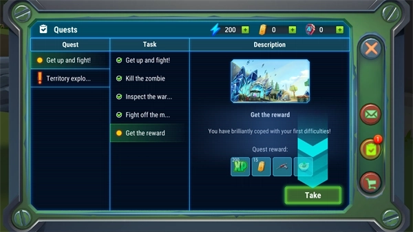6、通过任务栏能够查看当前进行的任务,完成这些任务后可以得到各式各样的奖励。