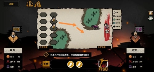 此战较为简单,只要兵力足够,战力达到240,我是纯弓阵容打的,先用移动集合,等敌方猛兽冲锋或是步兵戳击时用驻停就能惨胜。